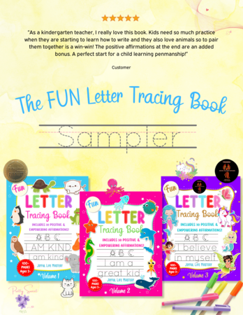 This practice tracing sampler includes 9 pages: 3 letters, 3 numbers and 3 empowering affirmations from Volumes 1 - 3.
